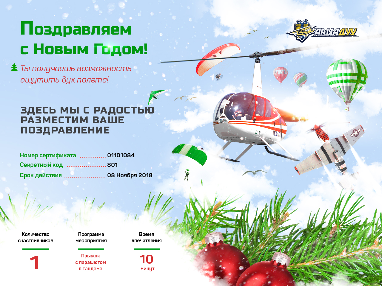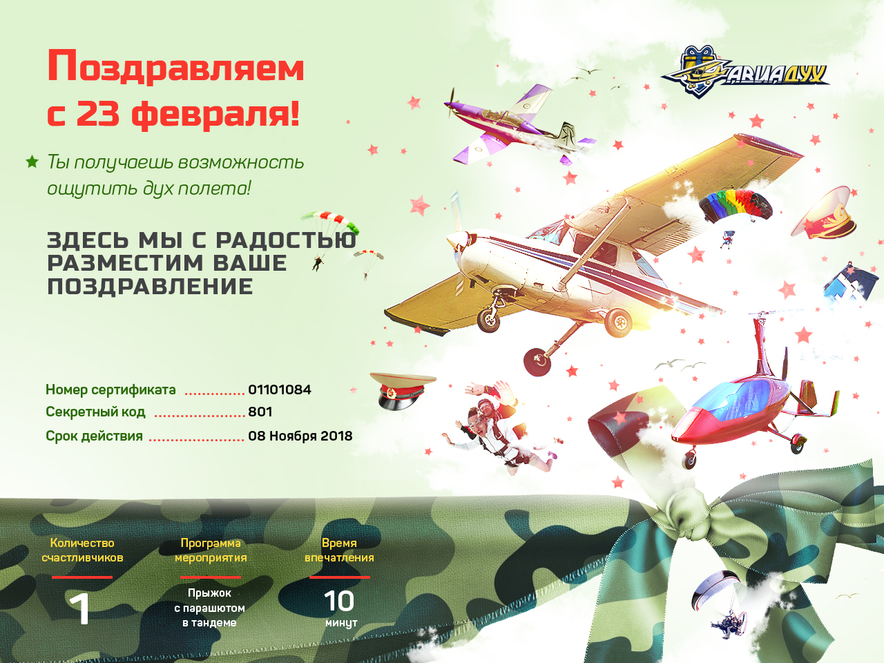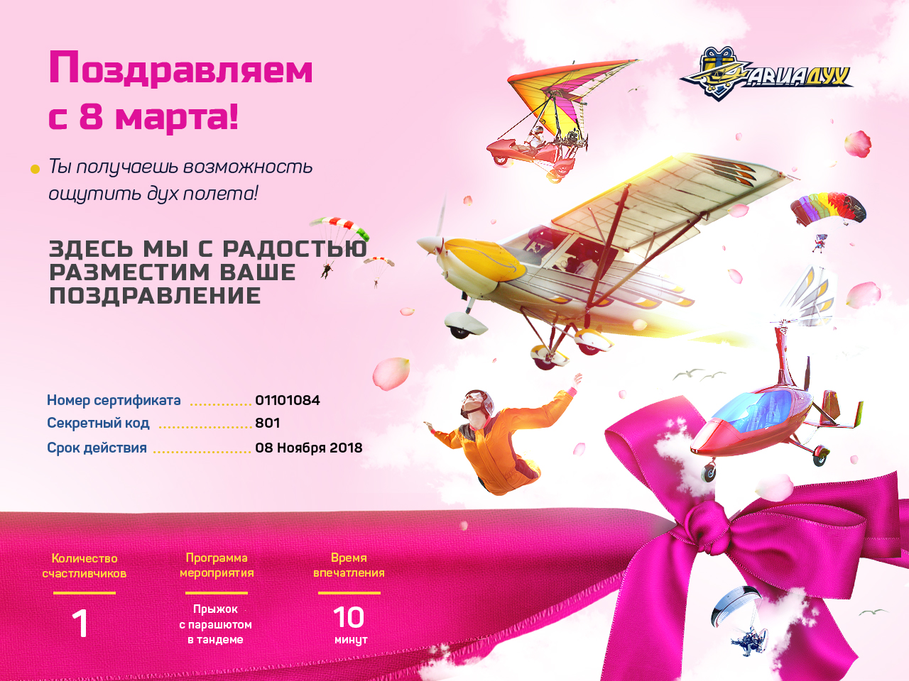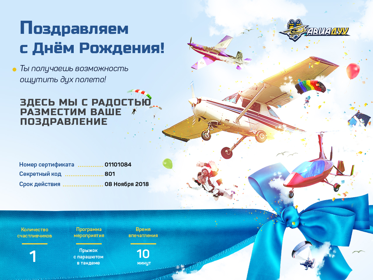 БОНУС! При оформление сертификата в офисе авиационный сувенир и подарочная открытка в подарок!