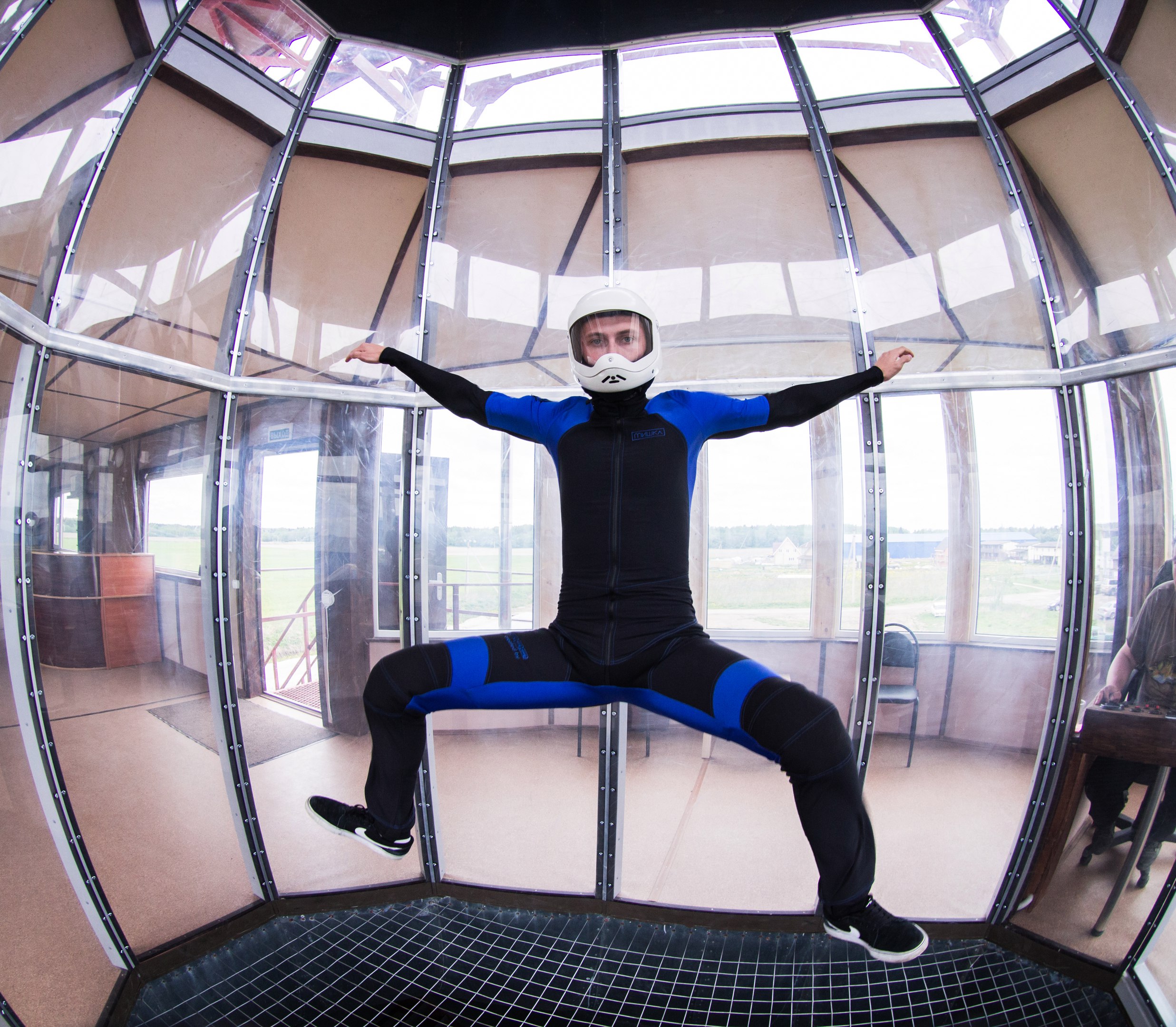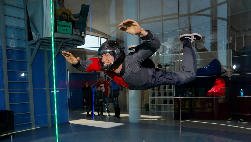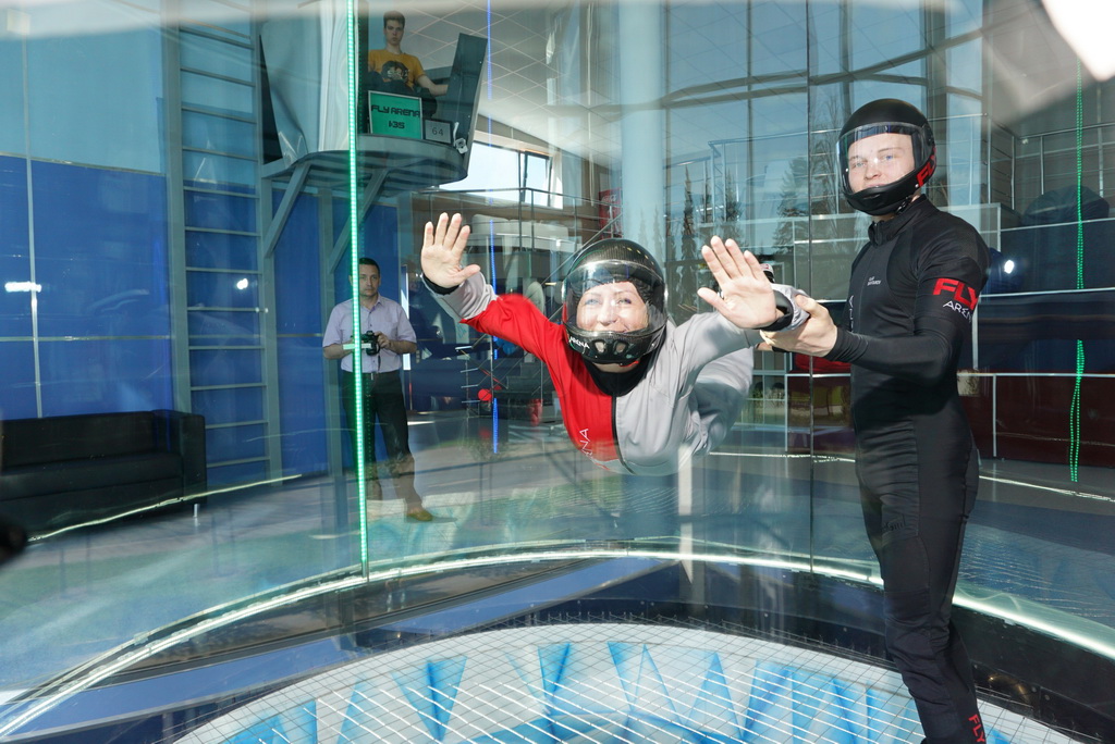 Размеры полетной зоны (диаметр 3 м, высота 7 метров) позволяют не только свободно перемещаться одному человеку, но и летать двум спортсменам одновременно.